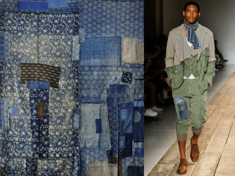 boro boro, the traditional Japanese patchwork that began as peasant clothing centuries ago has made a reappearance on the New York and Paris runways. Boro boro is a textile technique that celebrates the beauty in something frayed, decaying or repaired. There is a belief in Japan that when something has been damaged and mended, it becomes more beautiful.