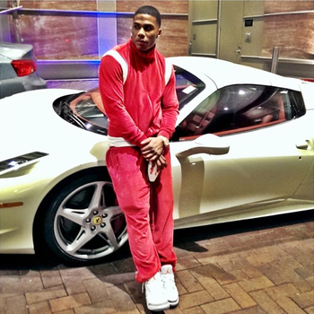 Akademiks velour tracksuits. Credit Carlota GuerreroRapper ‘Nelly’ in an Akademiks velour tracksuits.
