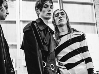 Topman Spring 2016 collection featured Models in high-waist, wide-leg pants that were paired with tank tops patched with embroidered badges. Pants came in colors that ran from muted pink, khaki and denim to bold “Beetlejuice” stripes. There was a Formula One influence circa the 80s influences that came through in skinny nylon pants with side stripes, leather bomber jackets – including one in hot pink – and shiny Windbreakers in panels of blue, turquoise and gray.